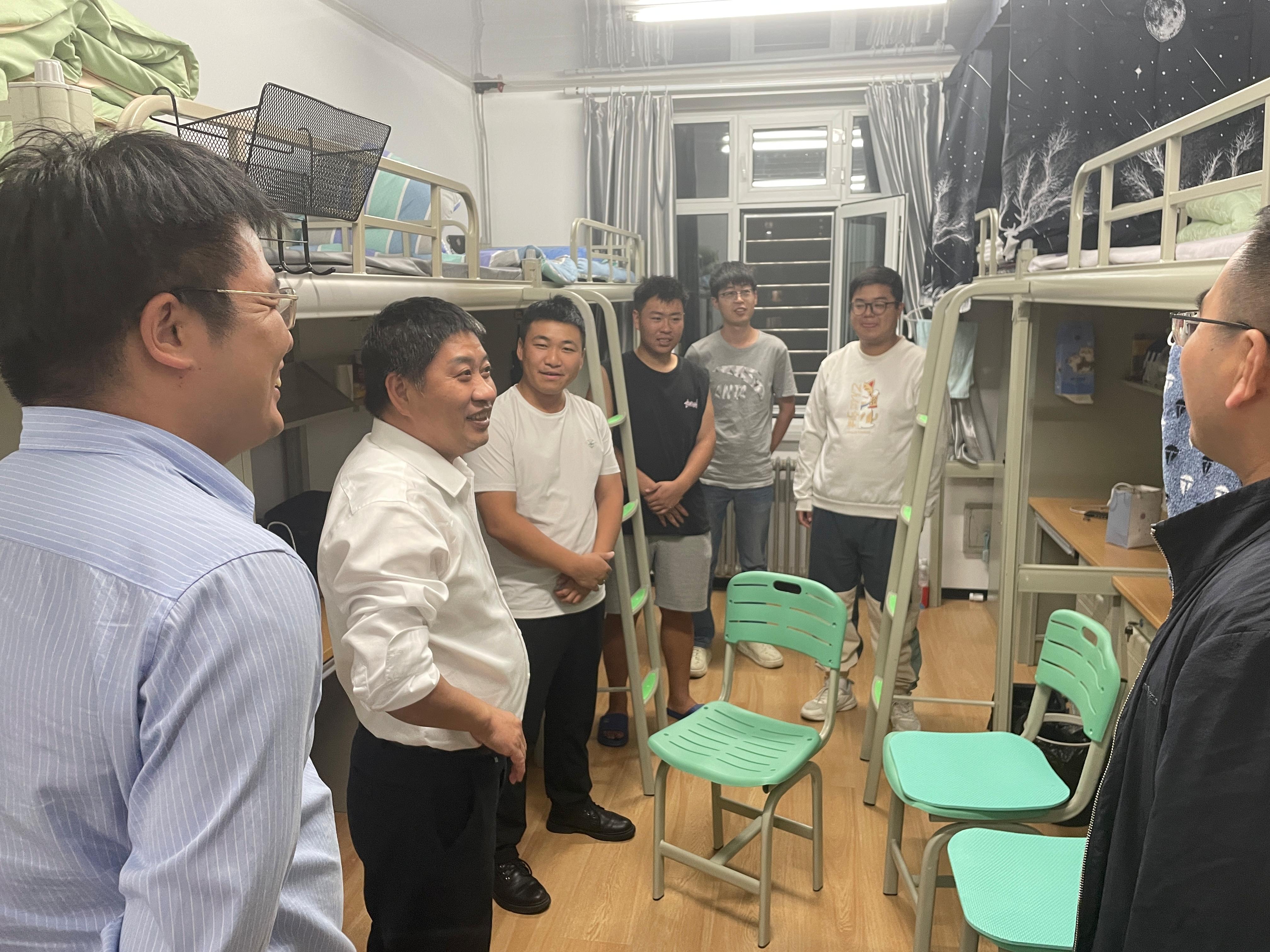 9月9日中秋之夜,bevictor伟德官网经理周旭辉等公司领导班子成员分队深入走访2024级新生宿舍,为同学们带去中秋祝福与真挚问候。公司本科生辅导员白海波、研究生辅导员于文浩一同走访。