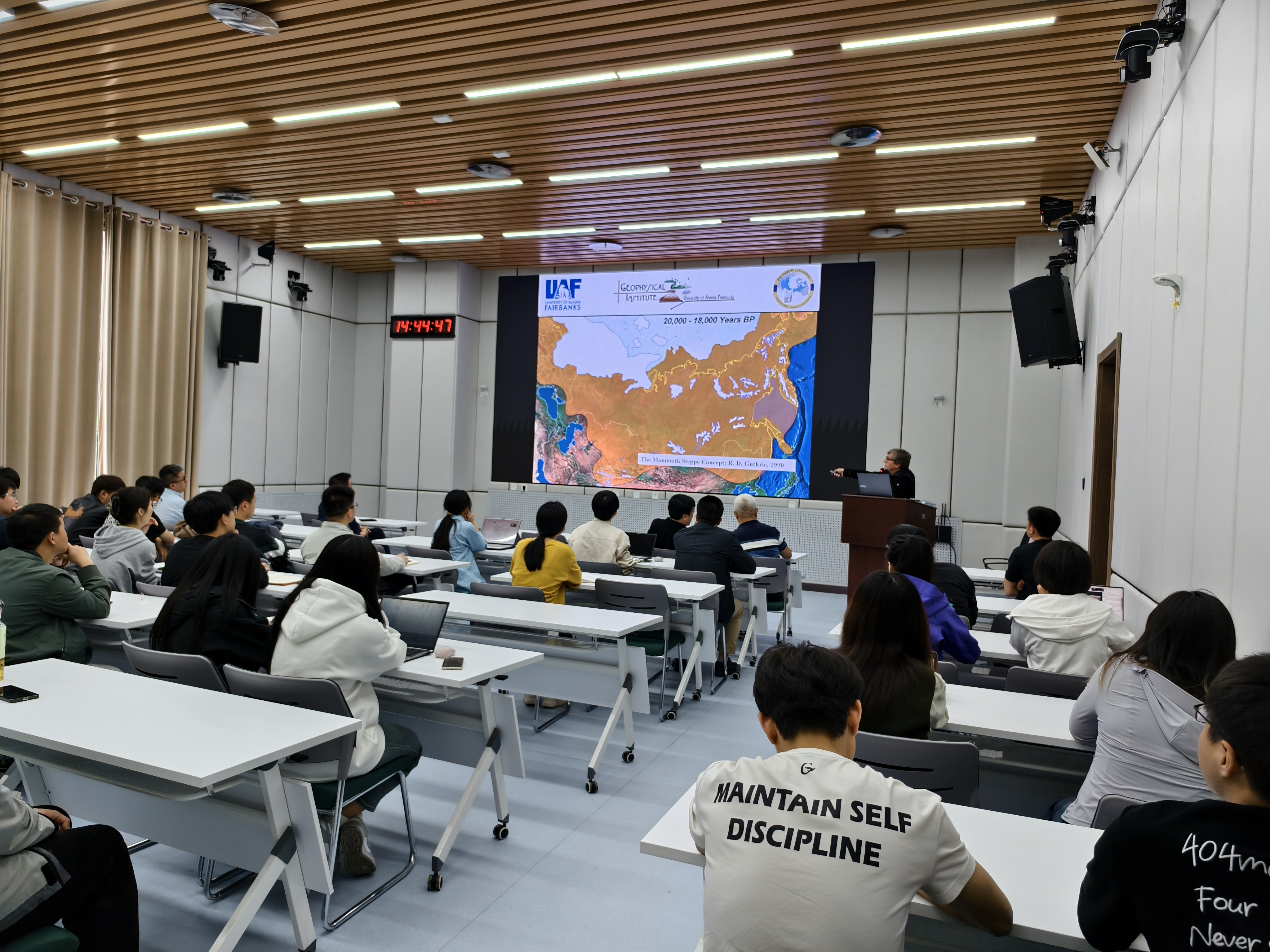 互动环节中,在场师生围绕冻土温度监测方法、热侵蚀防控技术等议题展开热烈讨论。Romanovsky教授结合其团队在北极长期生态监测的经验,分享了地温传感器网络布设、遥感数据反演等技术手段的应用案例,并呼吁建立跨区域的北极冻土监测协作网络。他特别提到,阿拉斯加大学在北美北极地区的监测站点数据,可为全球冻土变化研究提供关键支撑。